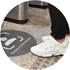 Отдельной большой задачей было оформление фасада павильона. Вместе с клиентом мы решили, какую информацию нужно разместить на окнах около входа. Сложность этой задачи заключалась в масштабе: нужно было удаленно представить реальные размеры каждого элемента, продумать местоположение объектов относительно человека и удобочитаемость текста.